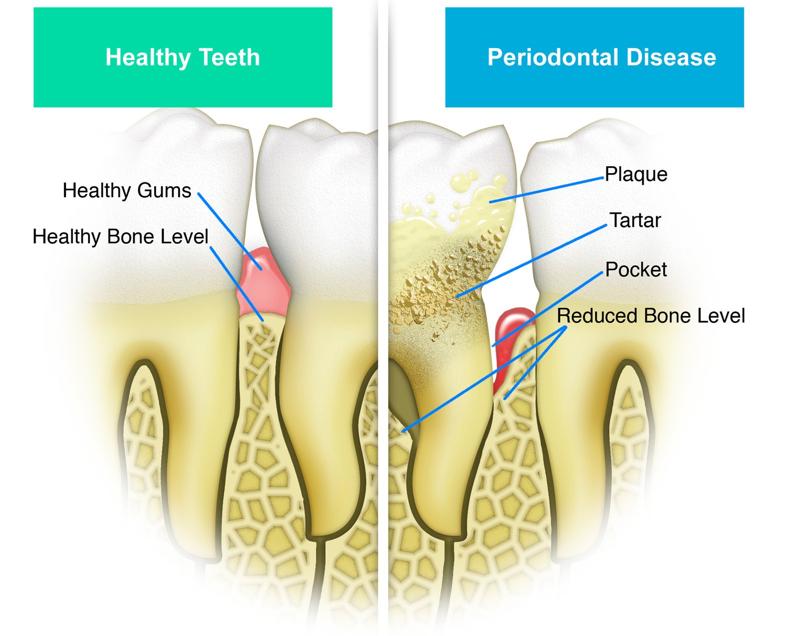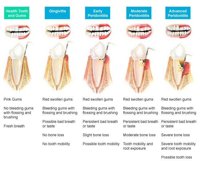 牙周病是一種慢性細菌感染,早期沒有明顯的症狀,不覺得痛,所以很容易被患者忽略,必須靠牙醫師的檢查。牙周病愈早治療,不止簡單效果也好。如果不及時治療,遲早會牙齦腫痛、牙齒動搖、甚至拔牙造成口腔的殘缺。而且齒槽骨會繼續萎縮,造成假牙製作的困難。牙周病治療後,仍需維持良好的口腔衛生,通常每三到六個月一定要作定期檢查和專業的割除,才能保持牙齒的健康,預防牙周病的復發。